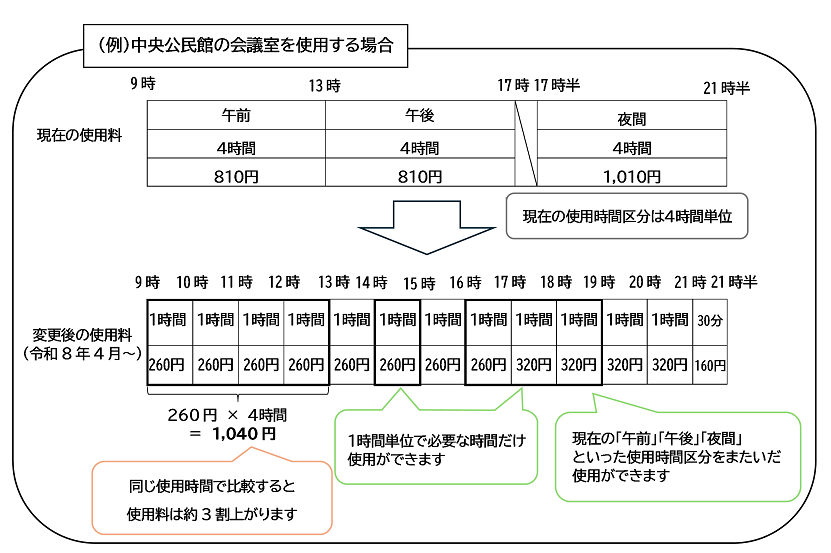 また、一部施設については、利便性向上のため使用時間区分を1時間単位に変更します。