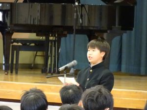 少し緊張した様子も見られましたが、堂々と歩く姿や真剣に話を聞く姿勢が印象的でした。そのような姿から、小学生から中学生へと成長していこうとする意欲が感じられました。学級開きでは、話す人の方を見て真剣に話を聞きながら、仲間や先生との出会いに目を輝かせる姿も見られ、これからの学校生活に期待している様子が伝わってきました。