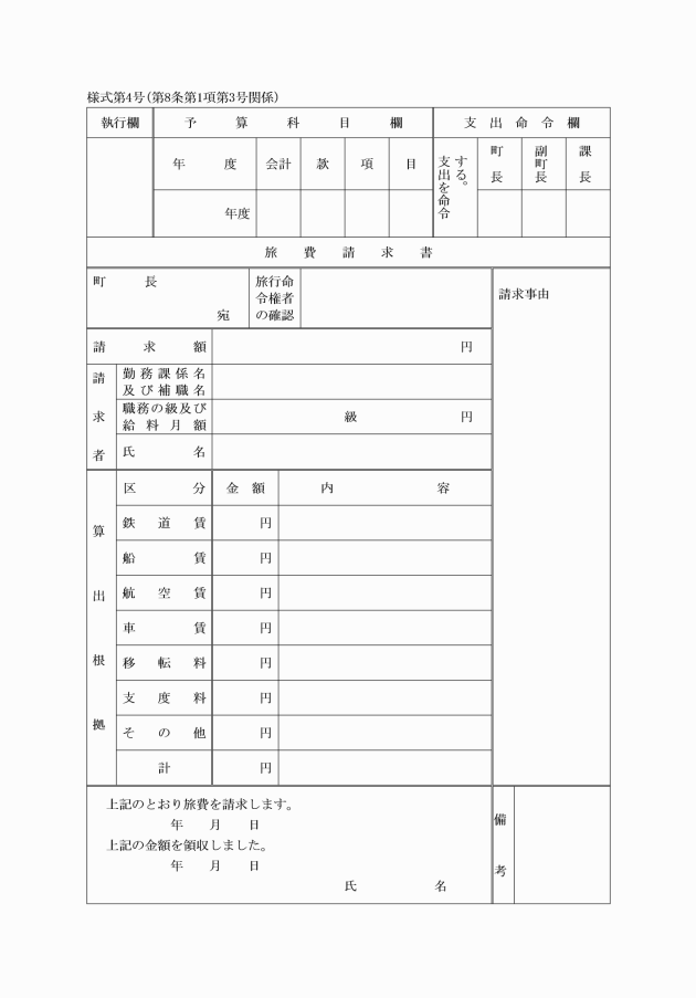 第4 第8条第1項第4号に規定する旅費請求書に添付すべき書類
