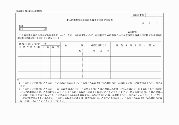 第18条 受益者又は納付代理人は、住所又は法人の所在地若しくは名称を変更したときは、遅滞なく下水道事業受益者住所等変更届(様式第10号)を町長に提出しなければならない。
