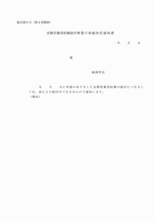 第4条 岐南町長(以下「町長」という。)は、前条の申請書の提出があったときは、その内容を審査し、養育医療の給付の可否を決定するものとする。